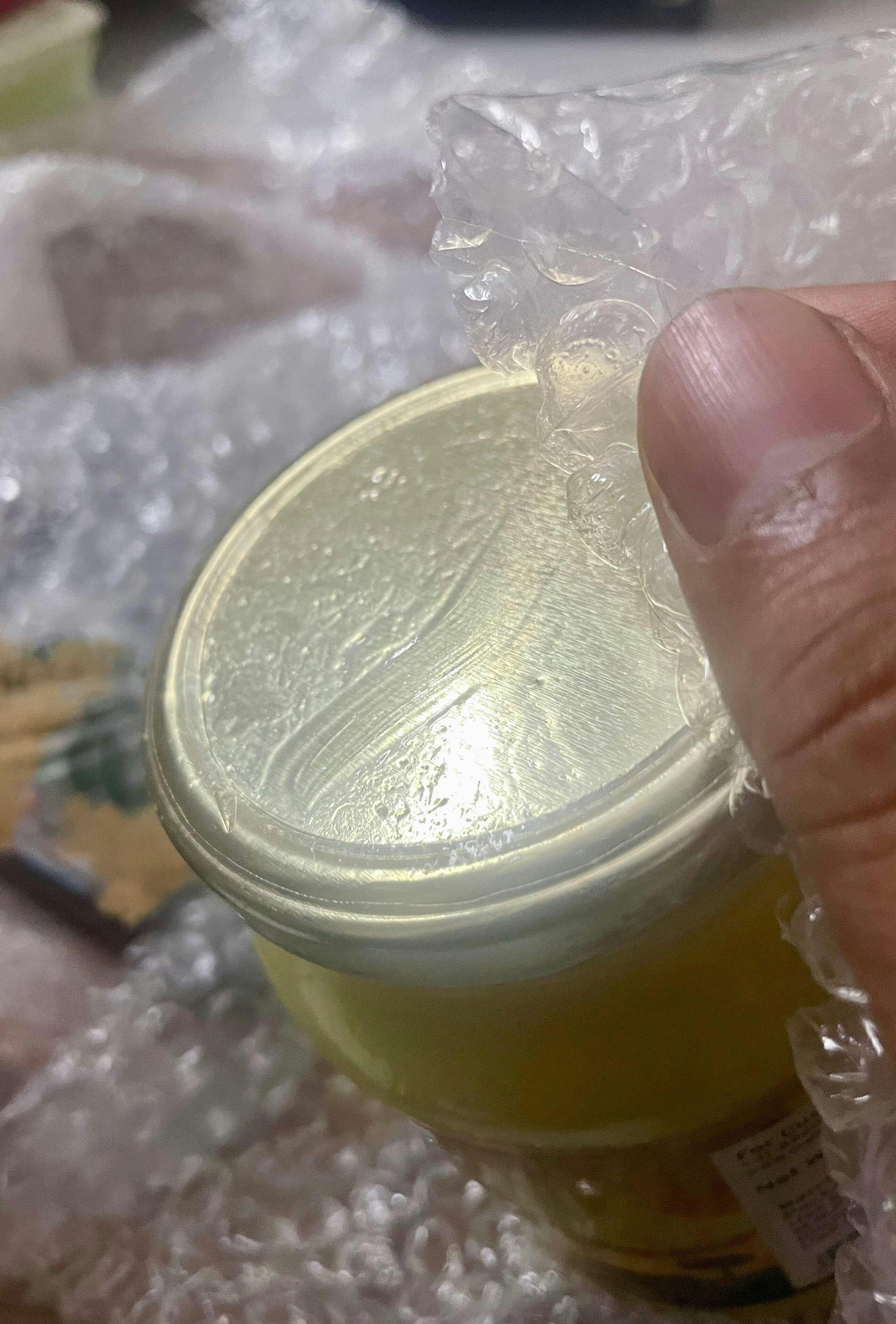 Fresh ghee has a pleasant, nutty aroma, golden-yellow colour, and smooth texture. Spoiled ghee may develop a sour or off smell, discolouration, or a grainy, sticky consistency.
