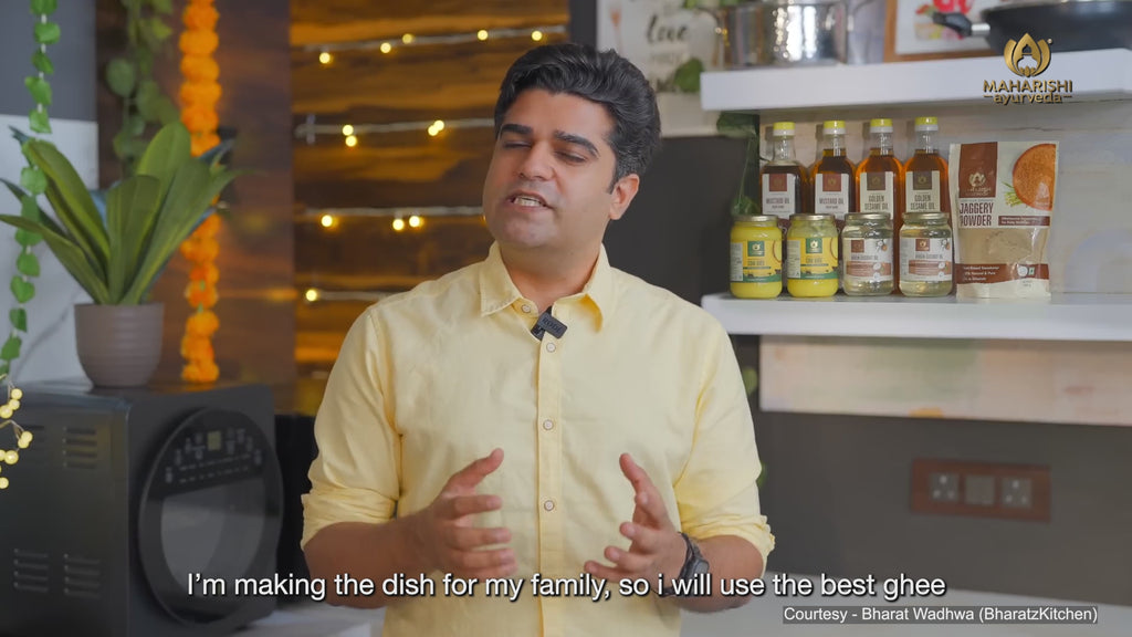 Organic cow ghee, sourced from organically-fed cows and prepared without additives, offers purity, a better nutrient profile, and aligns with Ayurvedic recommendations for holistic wellness.